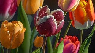 Die Tulpen sind eine der schönsten Blumen der Welt. Sie wachsen in Europa, Asien und Nordamerika. Ihre Blüten sind weiß, rosa, gelb, blau, purpurrot, dunkelrot oder violett. Die Tulpen sind sehr beliebt und werden gerne als Geschenk angeboten.